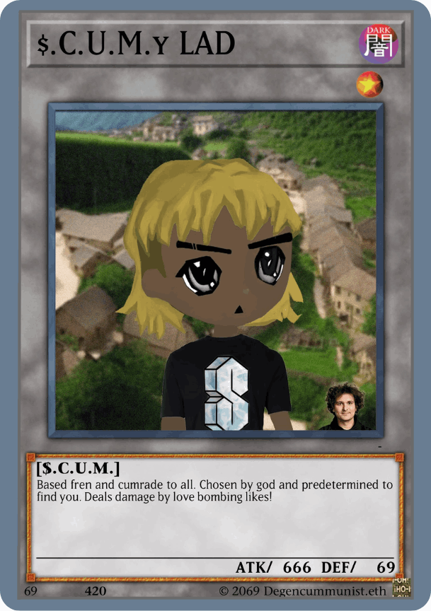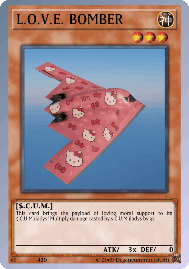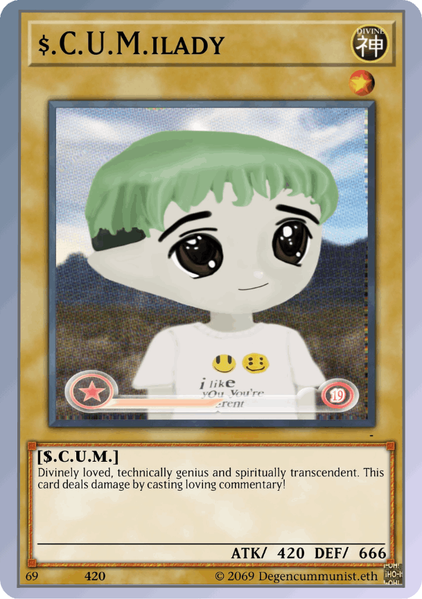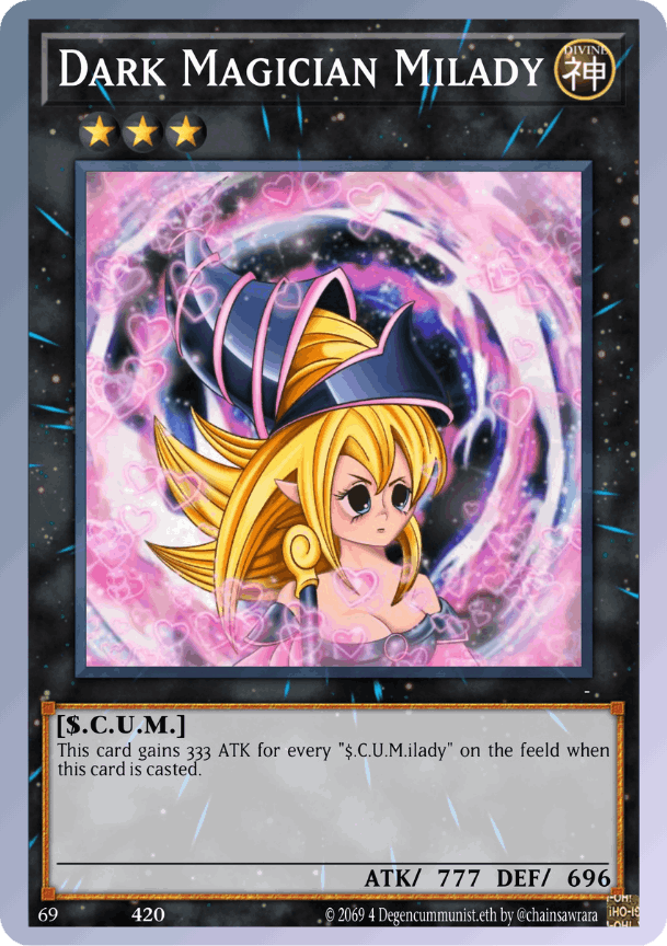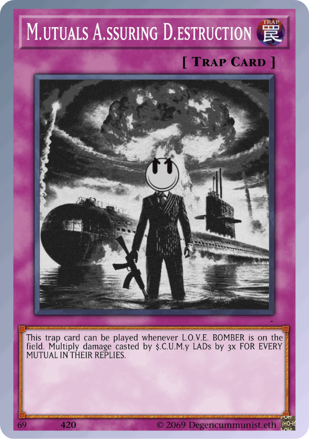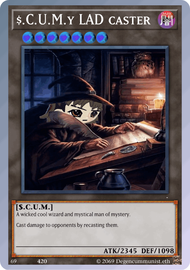 All $.C.U.M.onsters have [ATK]+[DEF] scores and every card does damage to your ops Life Points by engaging through liking, recasting, commenting, and quote casting them.